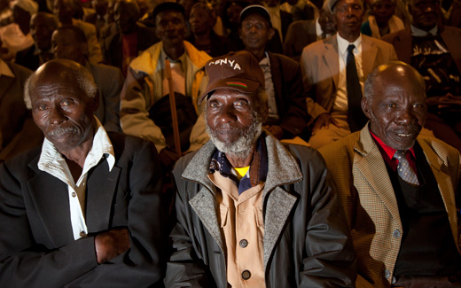 Photo: Veterans of Kenya’s Mau Mau uprising await the press conference announcing a settlement in their legal case against the British government, in Nairobi, Kenya, June 6, 2013. (AP/Ben Curtis)