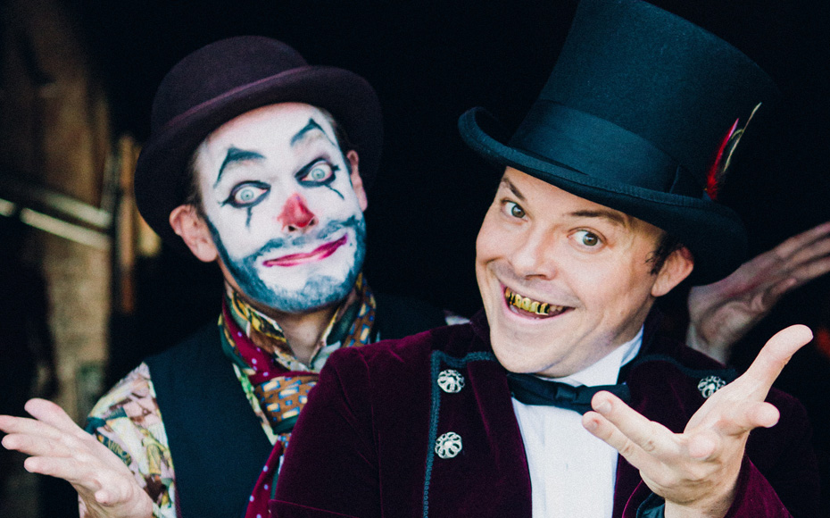 It’s hard to believe that McFadden also directs this approximately two and half hour two-acter that sprawls all over the place. At the after party, in between taking pies in the face, McFadden noted that in his seven years with The Gang this is the most complicated production the company has mounted. Perhaps Carnival has too many sideshow acts and is too busy with too much going on and could be trimmed by half an hour? There are zombies (but of course) and a British vignette which seems plucked from out of thin air—but then I learned the co-creators are British-based, so that explains the Union Jacks. (Roger Eno is the brother of English musician Brian Eno, and while Jack Pinter was born in New York he moved to the U.K. years ago.)
