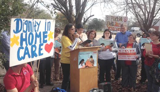 Photo: Care worker speaking at Houston rally for home care workers, seniors, and people with disabilities. National Domestic Worker Alliance Flickr page
