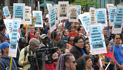 Meanwhile, he said, the hotels are “seeking to use the economy as an excuse to combine jobs, shorten shifts, require workers to pay for health care, and reduce pensions,” in the hope of accomplishing what they could not during talks for the previous contract in 2004-2006.