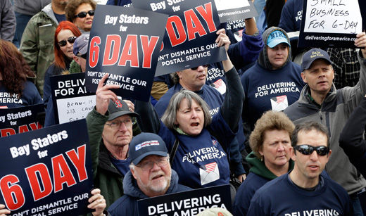 Photo: At a rally on the Boston Common, March 24, 2013, held to save six-day mail delivery service. Hundreds turned out for the rally to listen to speakers and demand that mail continue to be delivered on Saturdays in the U.S. Steven Senne/AP