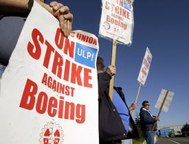 The strike, now going into its second month, has become what observers see as one of the most important labor battles in recent history. The 27,000 workers who are out on the picket line have been demanding not just a fair share of the profits they create but major agreements from the company in the areas of job security, affordable health care and fair pensions. The strike, according to analysts, has thus far cost the company $2,359,953,800 in sales. Boeing last year made $100 million in sales per day.