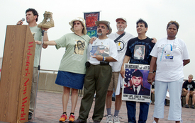 On Aug. 19, some 500 VFP and local peace activists marched from the Convention center to the St. Louis Arch. On the Arch steps VFP executive director Michael McPherson said, “This is the core of the peace movement, but we have to support each other. We have to build relationships. We can’t end this war alone. Let’s continue the fight and bring the troops home.”