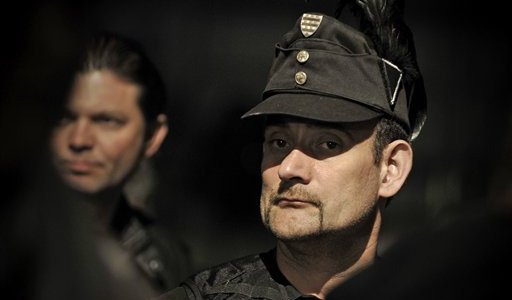 Photo: Member of the controversial Hungarian Guard, wearing paramilitary-style uniform, listens to the election results at the headquarters of Jobbik, Hungary’s far-right party, in Budapest, April 11. (AP/Timea Fauszt)