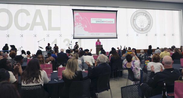 As might be expected with a Democratic convention about to officially open, the reception honoring path-breaking union women was held in Electrical Workers Local 134’s hall on Chicago’s South Side. The IBEW is Shuler’s home union and she spoke about her first organizing drive, in her hometown of Portland, Ore.