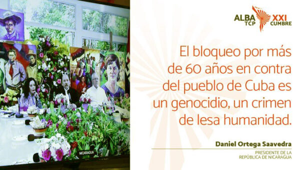 A través de un mensaje grabado, el presidente de Nicaragua, Daniel Ortega, participó junto a otros líderes del continente en la XXI Cumbre de Jefes de Estado y de Gobierno de la Alianza Bolivariana para los Pueblos de Nuestra América-Tratado de Comercio de los Pueblos (ALBA-TCP).