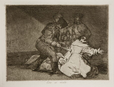 Plate 46: Esto es malo (This is bad). A monk is killed by French soldiers looting church treasures.| Creative Commons