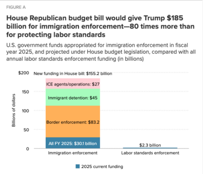 House Republicans recently passed Trump’s budget reconciliation legislation that massively redistributes income from some of the poorest households to the richest. It is now under consideration in the Senate and Trump is pressuring senators to pass it without major changes. Aside from cutting taxes by trillions for the wealthy, kicking 15 million people off health care, and cutting food aid for the poor, the bill provides an unfathomable amount of additional money to fund Trump’s draconian mass deportation agenda.