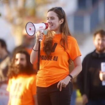 Holly Elmore (pictured) likens regulating AI to “clearing a minefield.”| Pause AI photo
