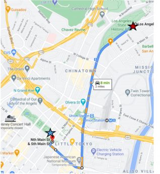 The march will begin from Los Angeles State Historic Park and continue down Spring St. (which will turn into Alameda St.). The march makes a right on 1st Street in Little Tokyo and another right on N. Spring St. between City Hall and Grand Park. The total march route distance is 2.1 miles. The closing program takes place before the City Hall steps.