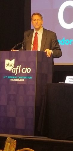An equally important contest emphasized at the convention is the race for governor. Richard Cordray, former head of the Consumer Financial Protection Bureau, is running in a close race against Republican Attorney General Mike DeWine. Many who addressed the convention stressed the importance that electing Cordray has for labor and for all working people. Joe Rugola, head of the Ohio AFL-CIO’s Political Committee, said that when Cordray wins Ohio, it will be “a new day for organized labor, a different day.” Cordray addressed the convention with the observation that under the GOP, we have a “Help Yourself, Serve Yourself” government in Ohio.