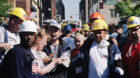 There were also chants challenging the city’s year-old ordinance placing restrictions on what groups may schedule marches and putting in place a bulky bureaucratic process by which to do so, including fees.