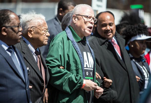 Líderes del movimiento laboral, incluyendo el Presidente de AFSCME Lee Saunders y la Secretaria-Tesorera Elissa McBride, así como líderes religiosos, activistas comunitarios, oficiales electos, miembros de uniones, familias trabajadoras y demás, siguieron los pasos del Dr. King desde Beale Street a Mason Temple portando carteles y vistiendo camisetas que decían “I AM 2018”.