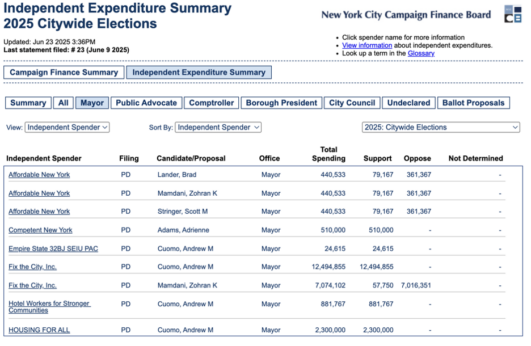 But that spending pales in comparison to the campaign cash dished out by “Fix the City,” the pro-Cuomo PAC, which has poured nearly $20 million in spending into the race, according to the latest campaign filings. It is, by far, the largest SuperPAC to ever weigh in on New York’s municipal elections. Around $12.5 million of its war chest has been spent to support Cuomo, while $7 million has been spent to attack his closest rival, Mamdani. Board members and major donors include public relations magnates, government lobbyists, construction kingpins, and more.