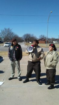 About 40 persons showed up with the above mentioned groups showing solidarity and support. The Norman Police Department police were not outside during the protest. Yet they did test their car sirens during the protest as if to disrupt the hearing of the speakers.
