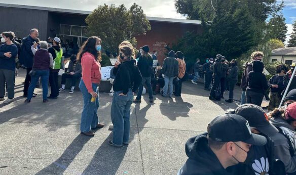 Rather than talk with students, the administration called in the police to force them to vacate Siemens Hall. Dave Meserve, a longtime community activist and former Arcata city councilperson, observed: “There were at least 30 cops, maybe more, and a helicopter circling overhead and it just seemed like way excessive, the response to what was going on,” he said, adding that he urged police to stand down and protesters to begin negotiations with the university.