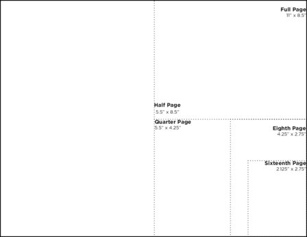 Eighth page (4 ¼” X 2 ¾”) = $60