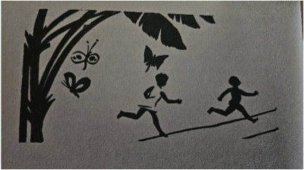 Immediately Popo’s thoughts turn to the tray he is crafting and embellishing. Beyond simple edification, the story has elevated his feelings. He is newly committed to finishing his work without delay. The boy thinks of what old man Durand had said about a design being a picture of how you feel inside. He wonders if his tray will show his silent sadness about King Christophe and Haitian history.