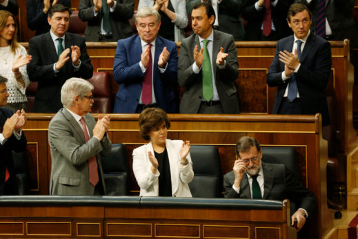 Rajoy’s defeat was apparent before the vote in the Spanish parliament, with the no-confidence motion passing by 180 to 169 with one abstention.