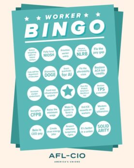 The AFL-CIO’s initial reaction to Trump’s record-breaking hour-and-48-minute address was a series of tweets on BlueSky, led by “a bingo game of all the things the labor movement WISHES we’d hear about” in Trump’s speech. They didn’t.