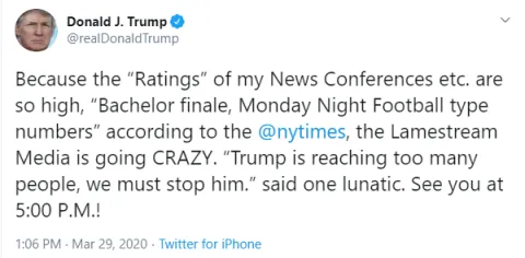 How far we’ve come from late February (just a month ago) when he told us that we’d be down to zero cases in a few days. But he’d rather we not bring that up. Don’t think about the weeks that were squandered when test kits could have been prepared or masks and gloves piled up in reserve.