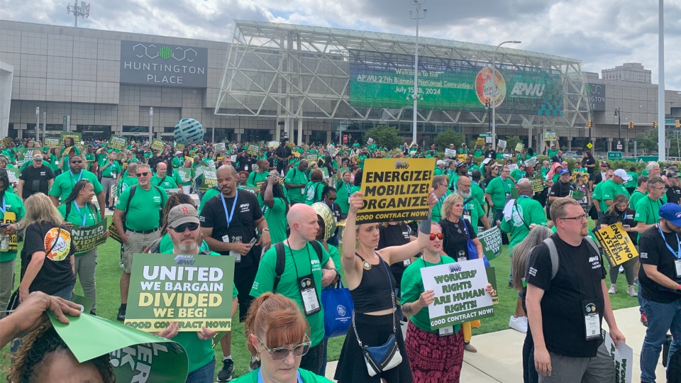 DETROIT—The American Postal Workers Union – fresh out of discussion, debate, and workshops at their 27th Biennial National Convention here – held a rally to build support for their new contract fight with the U.S. Postal Service. Bargaining talks between the union and management opened on June 25.