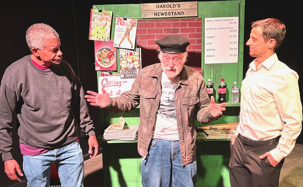 LOS ANGELES — In the West Coast premiere of Gary Morgenstein’s 80-minute dramedy A Black and White Cookie, two principal leads, Harold Wilson (Tommy Franklin) and Albie Sands (Morry Schorr) confound and confront ethnic stereotypes in an attempt to ward off the evil corporate landlord that is forcing Harold out of the little newsstand and snack bar he’s operated for the past 30 years.