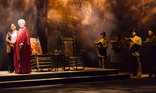 Incidental characters from her life wander on and off in speaking roles. The only other singing roles are an itinerant quartet of Black gospel singers from the local church, who interject inspirational messages throughout the 75-minute piece.
