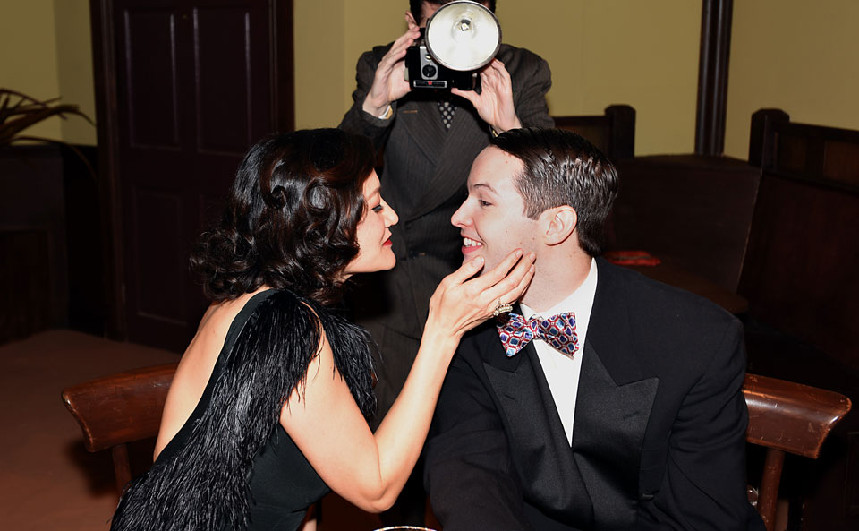 Haines’ homosexuality brought him into conflict with MGM, which had a vested interest in projecting his screen image as a heterosexual box office attraction. Haines’ clash with legendary studio chief Louis B. Mayer (the winning Jeffrey Winner) and Irving Thalberg (Kevin Dulude). He was Hollywood’s legendary “boy genius,” who had a dizzying rise in the ranks of the studio hierarchy starting at a very young age, first at Universal, then at what became MGM. Tired of covering up for Haines’ sexcapades in the press, the moguls didn’t exactly force heinous “conversion therapy” on Haines, but wielding the powerful “morals clause,” insisted he enter into an arranged marriage with a woman to serve as a beard for Haines, who was actually in a same-sex relationship with Jimmie (Sean Rose), while also enjoying sextracurricular activities with various sailors, at the YMCA, gay bars and so on.