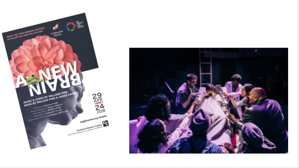 The remaining opportunities to catch A New Brain are as follows: Thurs., June 22 at 8 p.m. (Pay What You Choose), Fri., June 23 at 8 p.m. (Trans/Nonbinary Affinity Night—Pay What You Choose), Sat., June 24 at 2 and 8 p.m. The Davidson/Valentini Theatre at the Los Angeles LGBT Center is located at 1125 N. McCadden Place, Los Angeles 90038. Free parking for Center events is available in the garage across the street just off Santa Monica Blvd.
