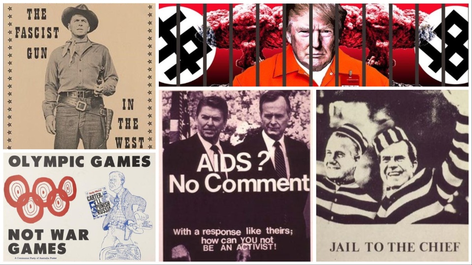 Although the subject matter of the Presidential Rogue’s Gallery is related to the executive branch, the posters in the exhibition are not your typical electioneering appeals. These are posters that exercise our First Amendment rights; protesting war, critiquing social policy, and calling out executive hypocrisy. The posters originate from the 1950s to the present and target both Republican and Democratic leaders. Given access to CSPG’s 90,000 poster collection, they are the pick of the crop and well worth viewing.