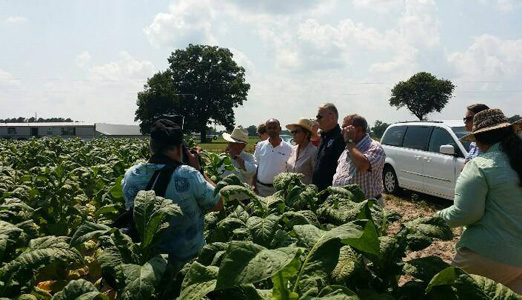 Photo: FLOC President Baldemar Velasquez, AFL-CIO Executive VP Tefere Gebre, Representative Marcy Kaptur and UK MP’s Ian Lavery and James Sheridan are currently touring tobacco fields in North Carolina, comparing the state of labor and human rights on union and non-union farms. The conditions vary considerably, but every tobacco field is hot in July! FLOC Facebook page.