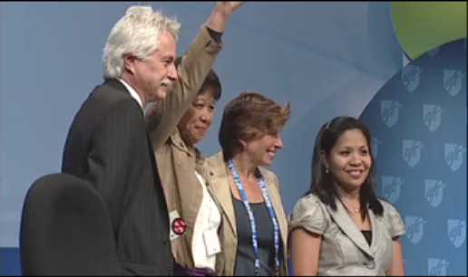 Others were honored at the convention for acts of solidarity. A resolution praised the outpouring of humanitarian aid for the people of Haiti after the January earthquake, including members of the AFT-affiliated Vermont Federation of Nurses and Health Professionals who flew to Haiti to provide emergency health care after the disaster. The resolution calls on the U.S. government to help Haiti establish a system of public “free, universal education” which it has never had.