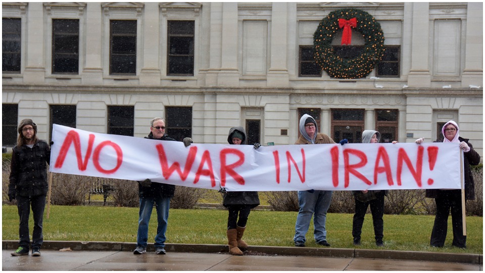 Michael Galant of Win Without War was caustic about Trump’s march to war, but he also faulted Congress, particularly pro-Trump Republicans, for forcing the anti-war language out of the $738 billion war budget Congress passed and Trump signed late last year.