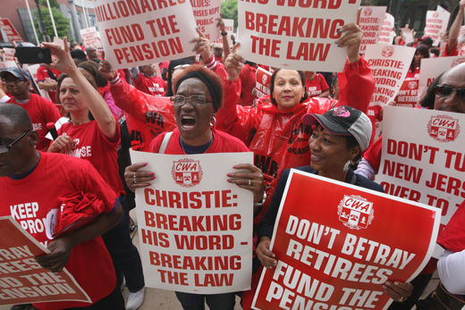 In a case to be heard June 25 in Trenton, the Communications Workers (CWA), the Fire Fighters, the Service Employees, the Teachers, the Professional and Technical Engineers, and a police association all say Christie did not make a required $900 million payment to the state and local workers’ pension plan. He wants the workers to shoulder the load, instead.