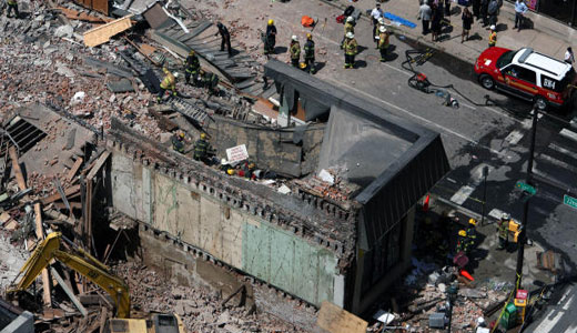 When the wall actually did collapse on June 5, workers on the roofing job next door rushed to help. Soon medics, fire fighters and search-and-rescue teams arrived on the scene and took over the dangerous and painstaking work of searching through the rubble for survivors. In the immediate aftermath of the tragedy, one of the union roofers who had gone in to help told the press, “It was like a maze in there…. Someone dropped the ball on this.”