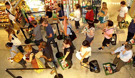 Photo: Customers wait in line at the Whole Foods in New York City’s East Village. Much of Whole Foods’ “organic food” is genetically modified. David Shankbone, Wikipedia // CC