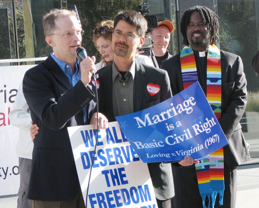 As marriage equality supporters gathered outside the courthouse before the latest hearing, the Rev. Jesse Jackson told them by phone, “I believe in human rights for all human beings. We must measure human rights by one yardstick.”
