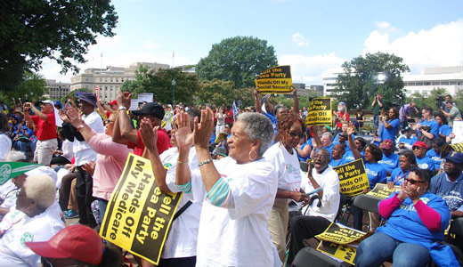 As she gazed out at a throng of hundreds of unionists and senior citizens, massed on a lawn north of the U.S. Capitol on a sunny day with the structure’s great dome as their backdrop, the retired Machinist declared: “You’ve been given a lot of facts here. Now we need to get out there with them.