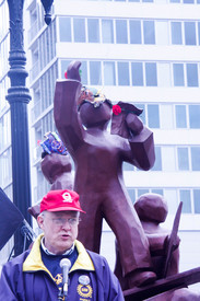 Larry Spivak, president of the Illinois Labor History Society, a key force behind construction of the new monument, noted May Day was a workers holiday observed all over the world and finally it’s being reclaimed by working people in the U.S. As part of the observance each year plaques are presented for installation by trade unions, both here and internationally, as an expression of labor solidarity. Federations in Columbia, Iraq, and elsewhere have presented plaques. This year the AFL-CIO presented a plaque.