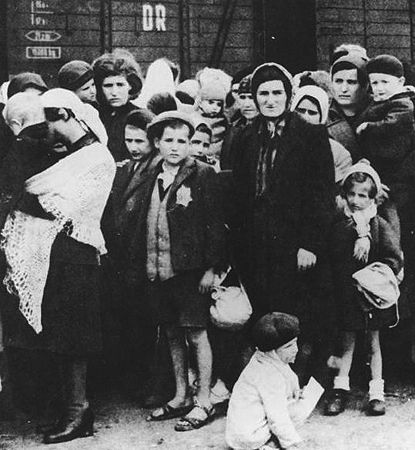 Photo: Hungarian Jews not selected as laborers were murdered in the gas chambers almost immediately after arrival. Photo from the Auschwitz Album (May 1944). CC BY-SA 3.0 de. Wikimedia Commons.