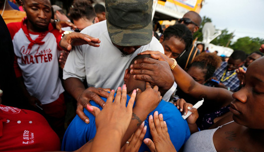 Photo: Alton Sterling’s son, Cameron, is comforted at a vigil in Baton Rouge on July 6. | AP/Gerald Herbert