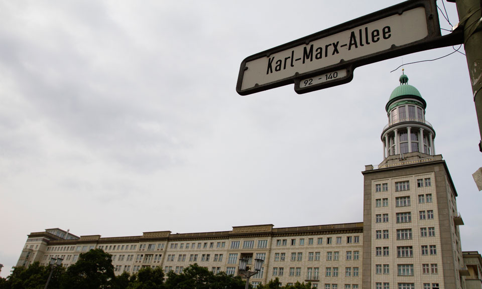 The building of the Karl Marx Allee apartments was the first successful step by the socialist GDR to radically improve the housing situation in Berlin after World War II. The grand boulevard stretches from Alexanderplatz, the city center of Berlin, to the Friedrichshain neighborhood further east. The entire city center was in the former East Berlin.