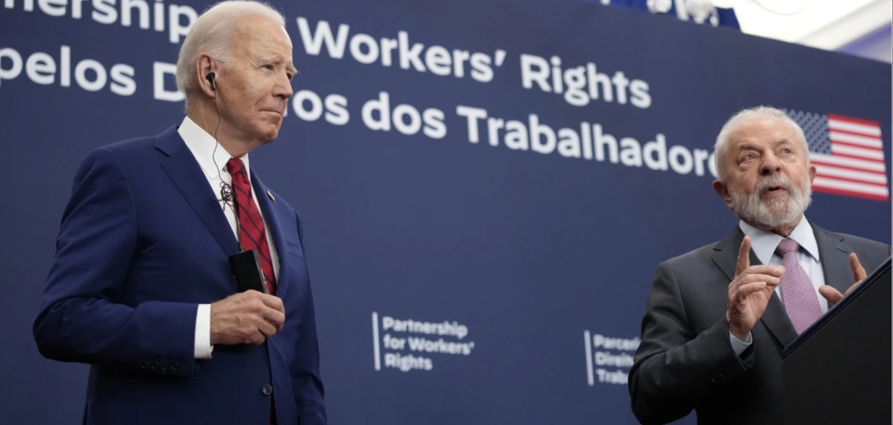 With U.S. and Brazilian union leaders looking on, among them, Liz Shuler, president of the AFL-CIO, Biden and Lula unveiled what they called a “joint U.S.-Brazilian partnership to promote workers’ rights” worldwide.