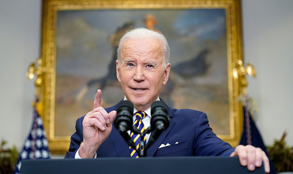 President Joe Biden banned oil and gas imports from Russia on Tuesday in one of the most far-reaching sanctions against the country after President Vladimir Putin sent troops to invade neighboring Ukraine. The move comes as gas prices soar and some Democrats in Congress hope to use the moment to push a clean energy agenda.