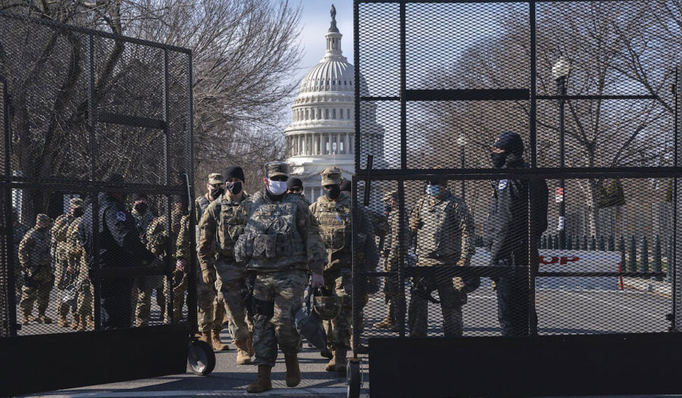 More than 25,000 National Guard members from around the country are patrolling streets festooned with Jersey barriers and eight-foot-high steel fencing. The Capitol ceremony will have only invited guests. Trump won’t be there. House Speaker Nancy Pelosi, D-Calif., and Trump Vice President Mike Pence will.
