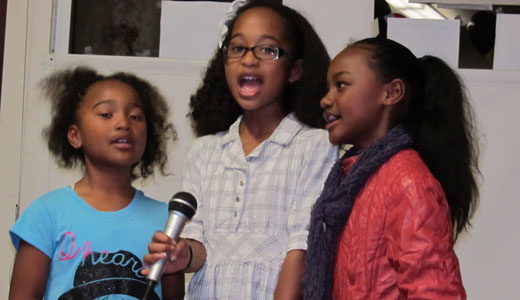 Photo: Kamea Ware, Naomi Carter, and Kawaai Ware perform at the Black History Month celebration. Marilyn Bechtel/PW