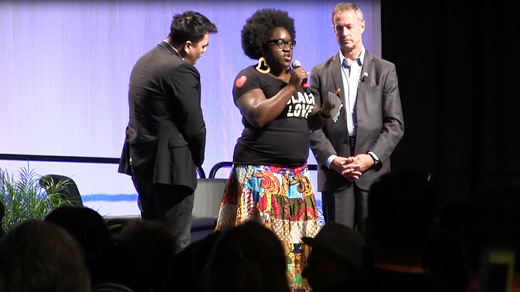 Tia Oso, executive director of the Black Immigrant Network walked on stage, shook hands with O’Malley and welcomed both him and Bernie Sanders to Arizona.