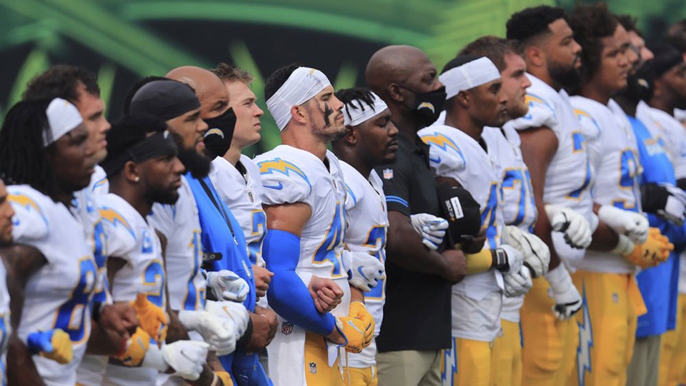 Teams opening the year in empty stadiums knelt, locked arms, raised fists in protest or stayed off the field entirely for the “Star-Spangled Banner” and the Black anthem “Lift Every Voice and Sing” on Sunday as the once-reluctant league brought racial injustice to the forefront on the NFL’s first full slate of games.
