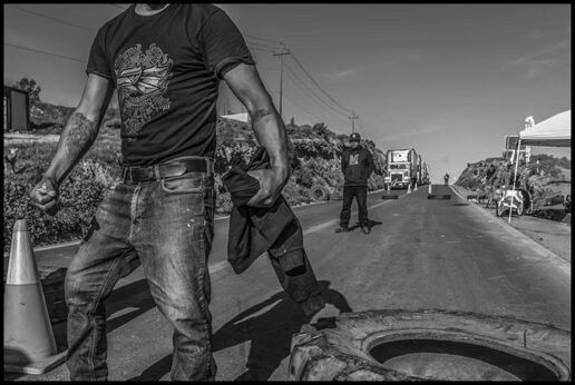 Every morning for over a week, hundreds of workers threw tires and traffic cones down on the highway’s asphalt, and the trucks stopped.  After sunset, huge crowds of men, women and children, dressed in the frayed clothing of field workers, milled around bonfires.  The glowing red lights of the huge vehicles, lined up motionless into the distance, lit their blockade.